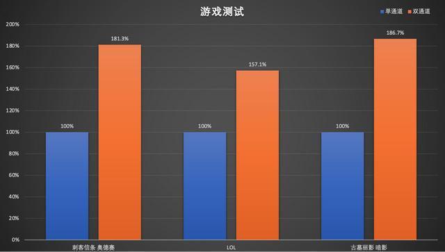 一、二渠道性能比较。刺客相信奥德赛和古墓的阴影两个频道的成绩都比对方高80%以上。您可以将游戏的可播放性从 Carton 更改为常规( 约30 个框架) 。对于ROFL这个不那么困难的游戏,与单通道内存相比,双通道内存增加了50%以上。不管是运行分数的理论还是运行分数的理论, 不管是运行分数的理论,还是运行分数的理论。还是实际游戏测试,为了正常享受零小时4SER4需要双通道内存。