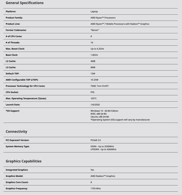 7 7 主要4800U 规格