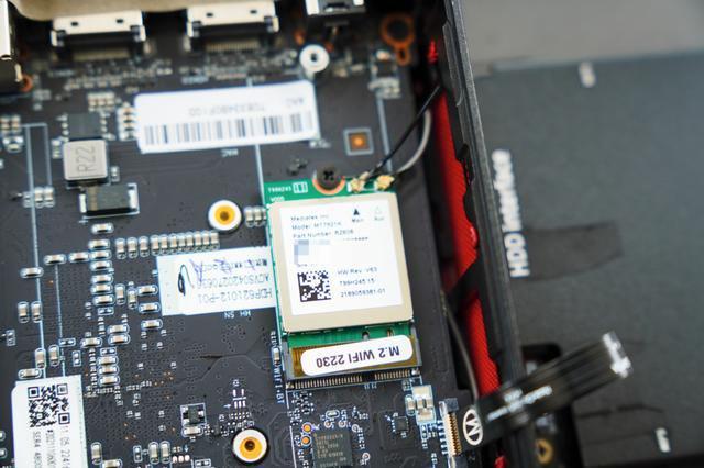 移除 SSD 后,与MTK共同开发的无线网络卡(AMD RZ608)如下。MTK的MT7921K芯片被使用。WiFi 6E 2x2 支持80M 频宽,5G/6G,最大速度1 200兆位/秒。4G组件的速率为574兆位/秒。虽然全国尚未支持WiFi 6E,但目前使用WiFi 6E不可行。但是,打开频率的6Ghz部分是一个好主意。比目前限制的 5GHz 频率还多家庭内部无线通信质量的进步是有益的。