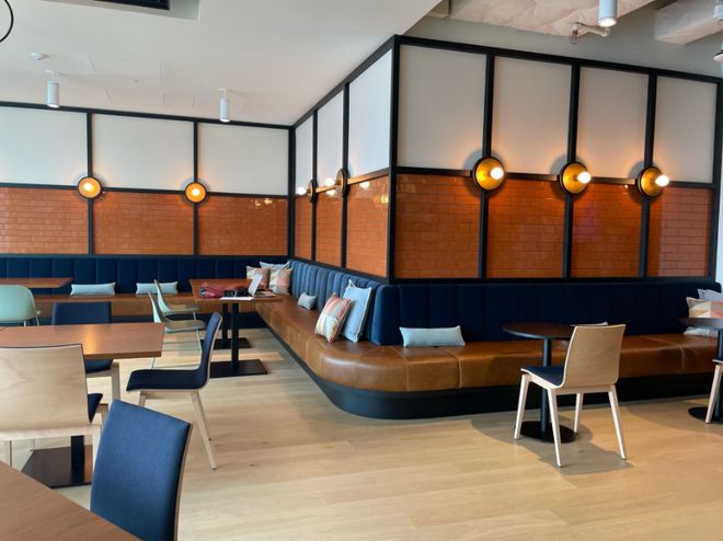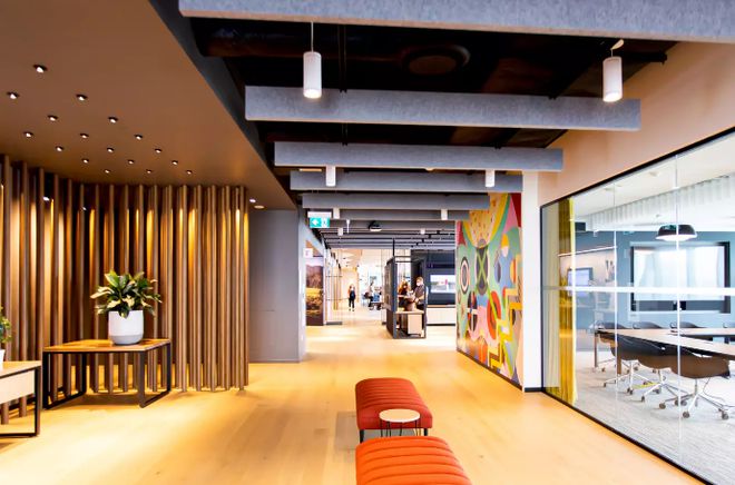 还特别强调可持续性,据报告,工作场所有3 00个传感器,监测水的使用、电力使用和碳排放。
