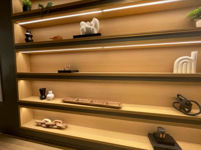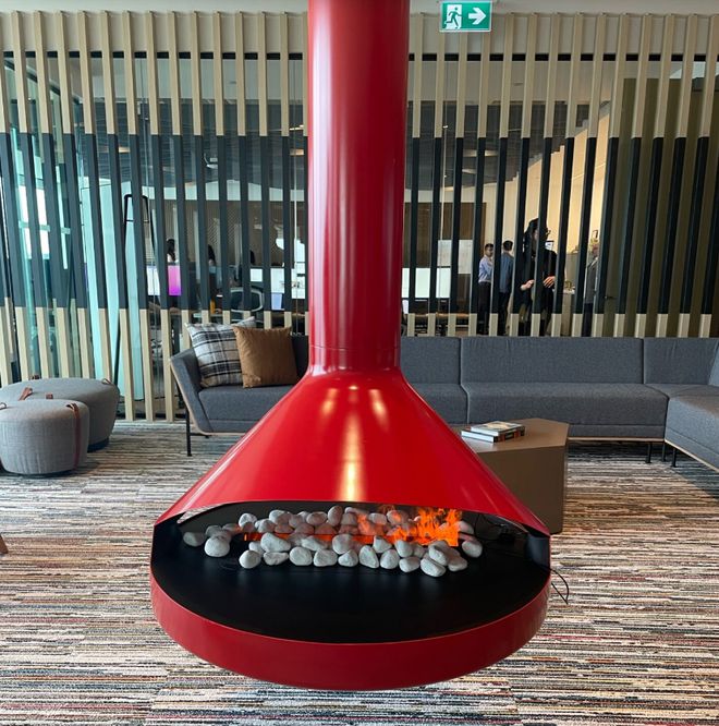 在整个区域,浅色木柴和明红设计很受欢迎。