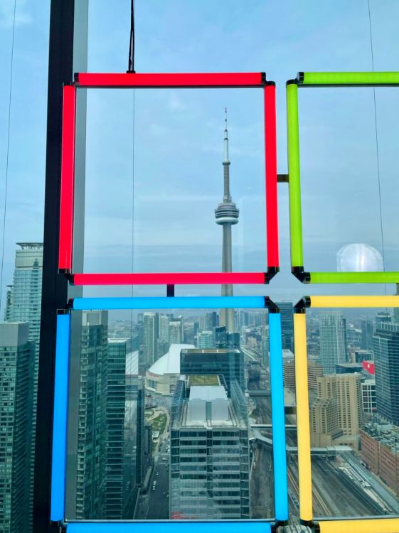南面的窗户提供安大略湖和抵达中岛机场的许多飞机的视野..
