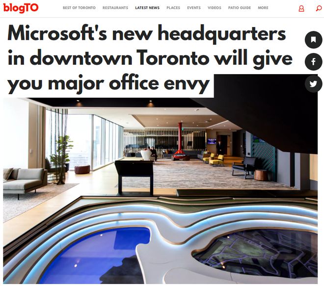 科技巨头扎堆入驻加拿大!微软多伦多总部办公室比5星酒店还高级