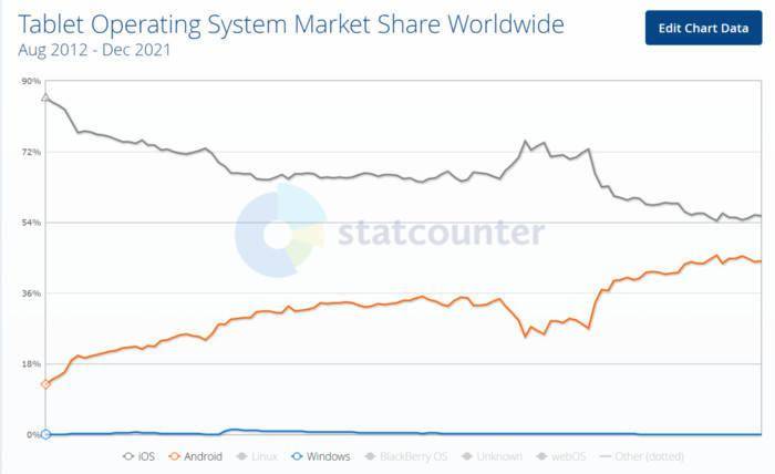 采用苹果二进制笔记本还有望大大提高联合笔记本市场上的现有地位。毕竟,笔记本和面板的组合已不再像过去那样吸引人。据该研究所统计局的统计,从2012年到2021年iOS和Andre继续主宰着全球平板工业。运行 Windows 的平板/双板电脑已经“安静”一段时间了。市场份额仅为0.03%。