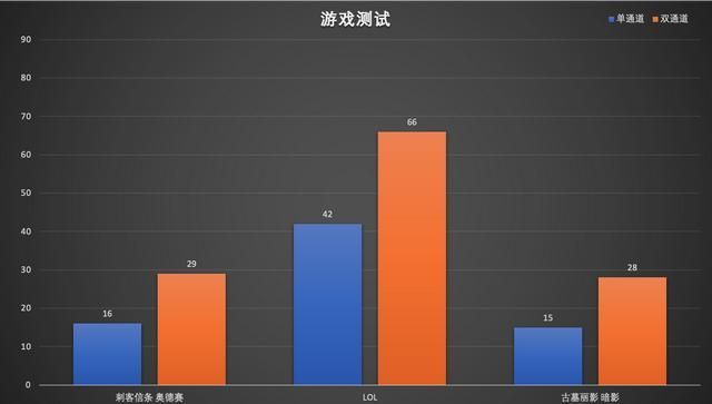 一、二渠道性能比较。刺客相信奥德赛和古墓的阴影两个频道的成绩都比对方高80%以上。您可以将游戏的可播放性从 Carton 更改为常规( 约30 个框架) 。对于ROFL这个不那么困难的游戏,与单通道内存相比,双通道内存增加了50%以上。不管是运行分数的理论还是运行分数的理论, 不管是运行分数的理论,还是运行分数的理论。还是实际游戏测试,为了正常享受零小时4SER4需要双通道内存。