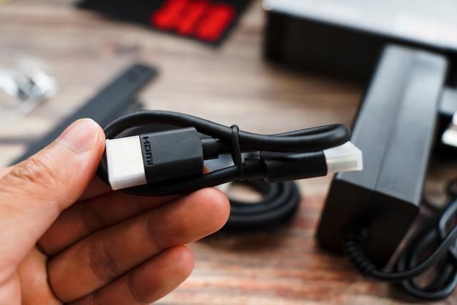 包装是相当直截了当的。除了宿主和指示之外,两条HDMI电缆,一条长(1米),一条短(0)。长程HDMI线适合各种桌面安排(主机体体积不大)。短线可以将它放在显示器下方。这不是唯一会发生在我们身上的事, 但它不是同样的事情会发生在我们身上。在电源适配器组件中使用了 DC 接口 。产出:19V3.15A 60W稍微小一点