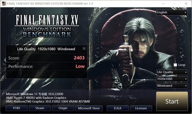 FFXV 基准利特基准利特,1920X1080 Windowed Scorre 2403, 无法播放