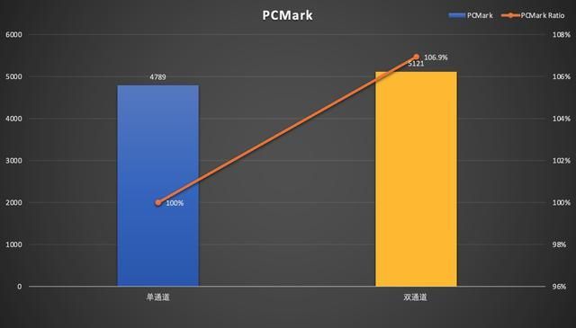 使用 PC Mark 进行办公室业绩检查,单声道内存得分为4789,双声道内存得分为5121。双向VS 单频道大约为6。由于对办公室用户而言,单声道内存差距远远小于游戏性内存差距,因此可能注意到9%的增幅。