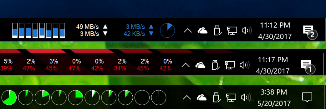 除了交通监测器之外,你今天还将接触到三种令人感兴趣的任务栏系统状况监测工具,这些工具可以直观地显示目前的计算机负荷状况。