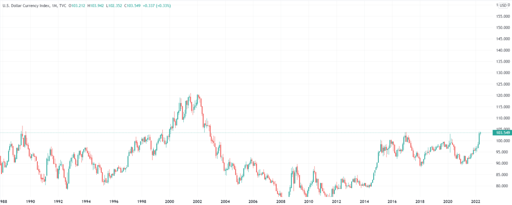 随着英镑和欧元在星期四疲软,美元指数上升到103,是2002年底以来的最高水平。
