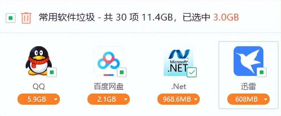微软管家只检查系统产生的垃圾, 而不是你独特的应用程序。