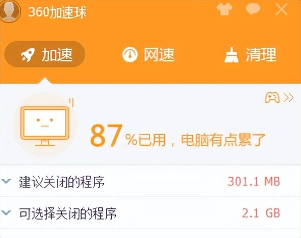 加速球应具有类似于360等计算机管家软件的类似目的。