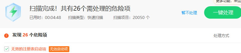 例如,考虑到无效登记表的启动项目,360回顾26件必须处理的危险物品。