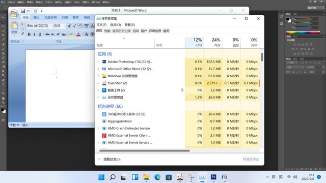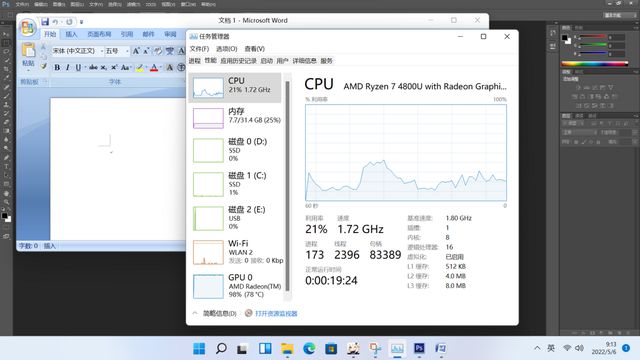 当我每天使用计算机时,我使用办公室工具和PS程序,这些工具和PS程序开放后显示硬件占用率相当低,为应用程序提供了流动的工作环境。