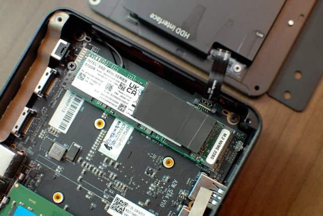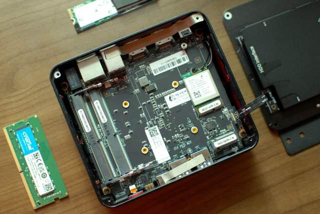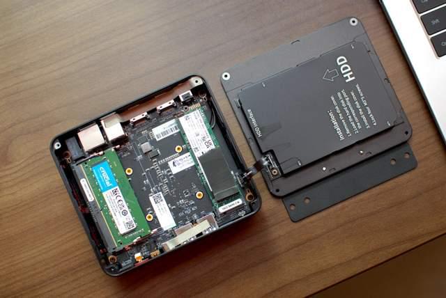 SER4 小型PC的内部结构在零时显示,底盘后面有2个。有5英寸的硬空间,因此我们可以增加2.5英寸的SSD或机械硬盘来进行扩展。