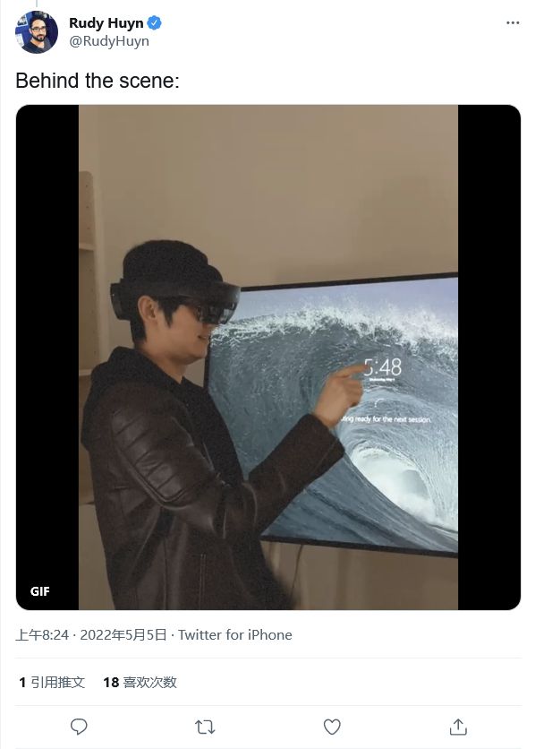 Huyn还把事情弄得一团糟, 并展示了一段剪辑:HoloLens的一位男子站在2号水面枢纽前,