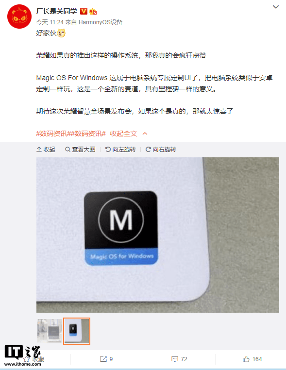 “Magic UI”已升级为 「Magic OS」 Glory似乎在Windows 11笔记本电脑上有新动作。