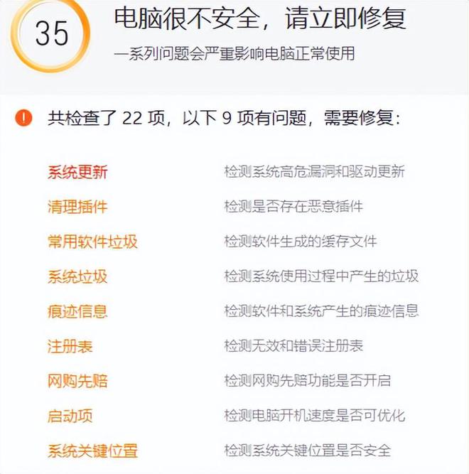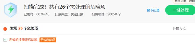 例如,考虑到无效登记表的启动项目,360回顾26件必须处理的危险物品。