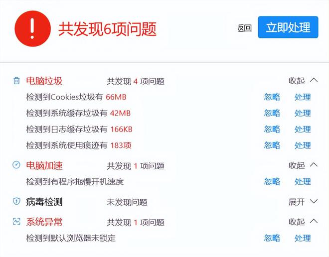 内部界面同样长:亚计算机检查、病毒筛查、垃圾清理、优化加速和用户反馈。