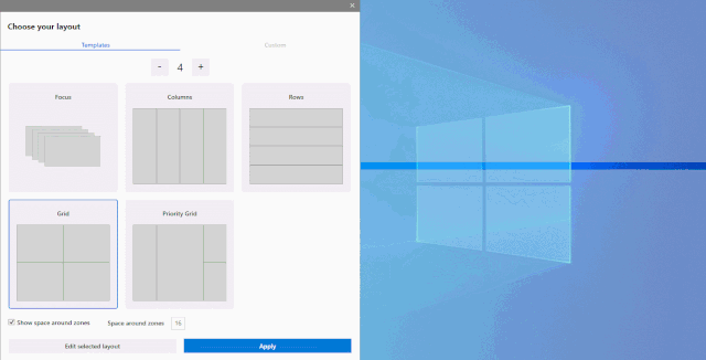 此程序同样直截了当: 将安装 PowerToys, 窗口布局将按“ Win+” 键进行配置, 时方块正在打开 。