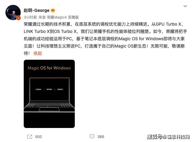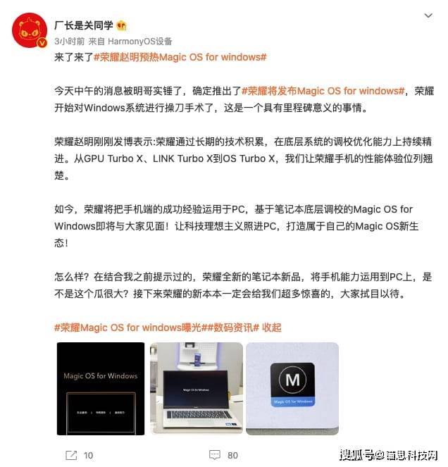 荣耀官宣Magic OS for Windows系统 MagicBook 14首发
