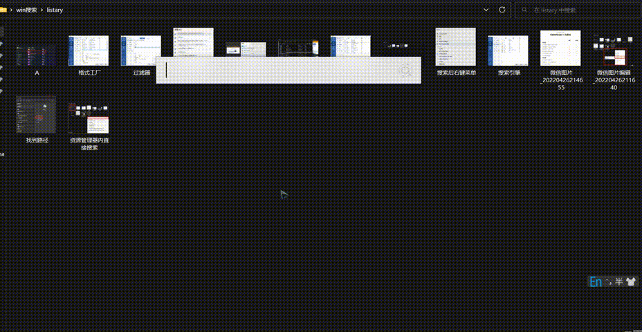 在 Windows 文件管理器窗口中搜索时, Listary 有秘密功能: 您直接写入关键字, 程序自动搜索, 窗口中匹配关键字的文件被放在结果的顶部 。
