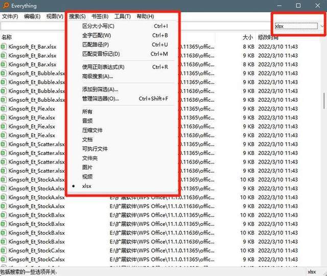 在表格文件中作为示例输入“* ” 。“ xlsx” 之后, 返回主界面并再次选择“ 搜索” 。 新配置的 xlsx 变成一个可过滤的项目。 这种自定义的技术使不同设置的用户能够快速获得不同格式的文档。