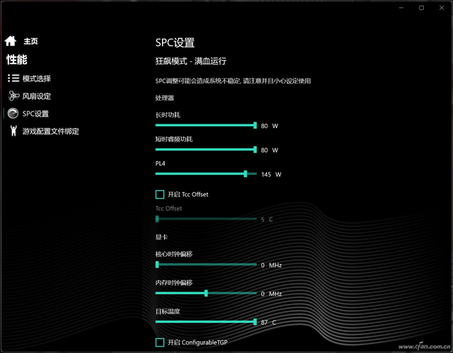 AWC AWC 在ALIENAWARE的笔记本电脑上预先安装了AWC 外星动力能源技术平台。对于某些设备,处理器可能使用图形界面超频。此外,调整电压规格。既然它绕过BIOS因此,即使没有经验的人也很容易处理手术。由于独特的智能科技, 四个球迷可能同时独立跑步。加速器、慢速和稳定风速根据不同地点的温度环境在三个州自动管理。对蒸发热、电和噪音的控制是精确平衡的。