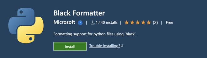 微软发布的第一个新扩展名为 Black, Black, 它为 VS 代码提供黑格式支持。 它与 Pylint 类似, 它利用 LSP 来提供格式化支持 。