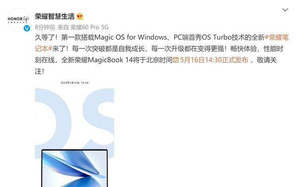 全新荣耀MagicBook 14官宣 Magic OS for Windows首秀
