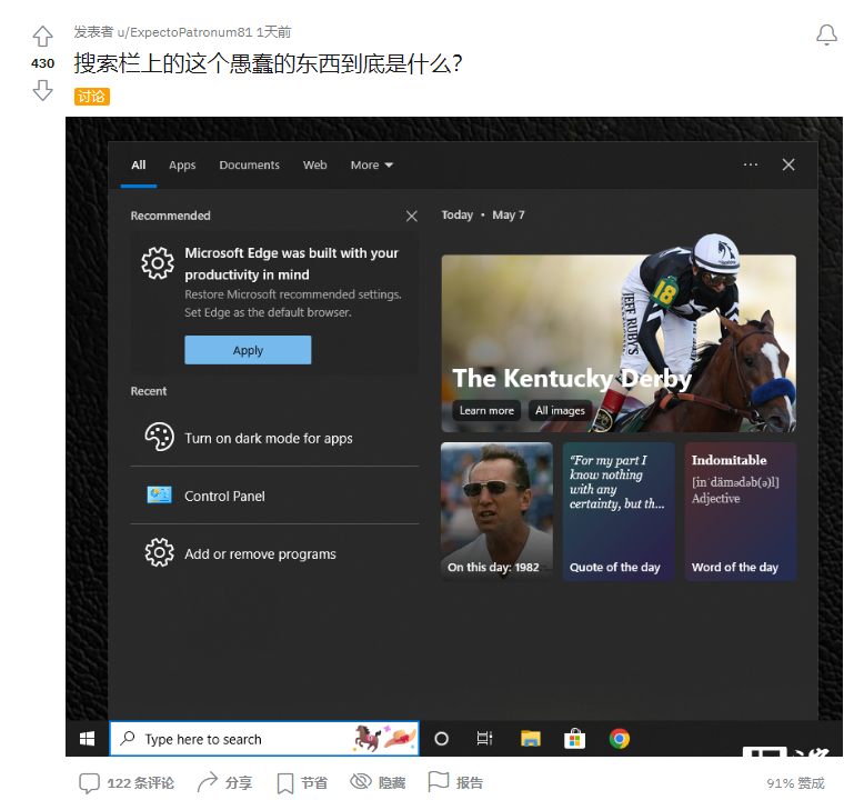 但好消息是对于那些不理解为什么他们的Windows搜索盒突然露出一匹马的人来说, redit r/Windows10主持人回应并解释一篇文章和一篇文章,