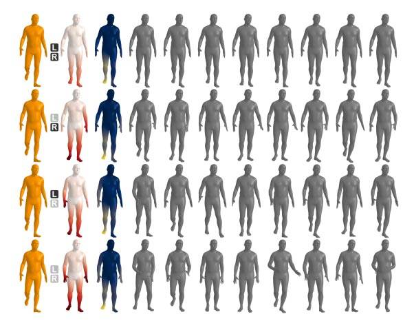 对于学习,小组使用了多个3D身体模型的数据集。即使整个模式可以进行端对端教学,也可以用作培训工具。但是,他们看到,他们最初接到指示要这样做。接下来,在潜伏地区, 我们将训练接近者 极其成功。因此,从一开始就有一个有效的z*是可行的。第二阶段培训非常迅速。4个GPU时间。