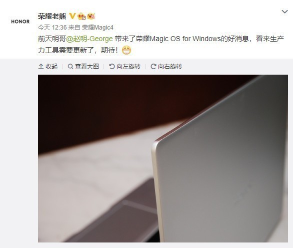 近日来,Glory终端有限公司生产线副总裁@Emergence Bear分享了一张新而奇妙的魔术书笔记本电脑的照片,他说,这台笔记本电脑将携带视窗系统的魔术操作系统,提高办公效率。