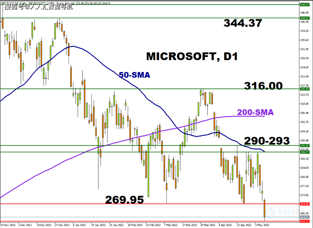 微软昨天走得更远,打破了269年的基本水平支持。 95年的水平已经降至263年,但仍维持不变,但整个情况对微软来说并不是好兆头。