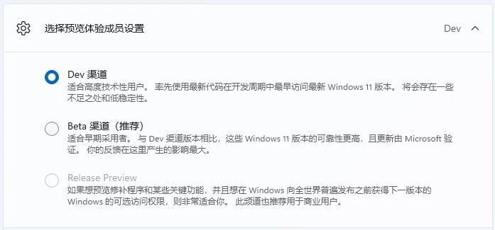 然而,根据最新的正式日志更新,Dev 和 Beta 频道之间的窗口周期即将过期 。稍后(也许以下更新)不能随意改变贝塔通道。请尽快搬去贝塔通道目前的 DV 频道版本与 Beta 频道版本相同 。但是,一旦你获得了比Beta频道版本号更大的Dev频道版本, 你将无法做到这一点。该点还关闭了接入开关。如果你想使用Beta Passage,请运行安装最新的 Windows 11 Beta 版本 。