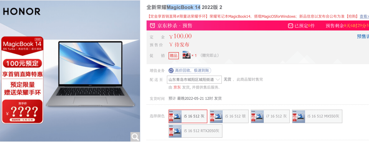 荣耀新款MagicBook 14开启预约:12代酷睿/RTX 2050