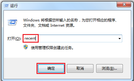 按 Windows+R --> 在弹出的对话框中输入 recent --> 点击“确定”