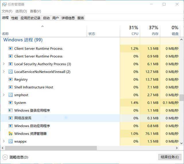 默认情况下,任务管理页面的下一步是简短信息的状况,此时我们必须点击软件界面顶端的 " 详细信息 " 按钮。