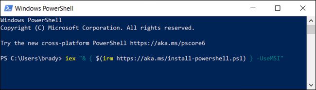 iex "& { $(irm https://aka.ms/install-powershell.ps1) } -UseMSI"