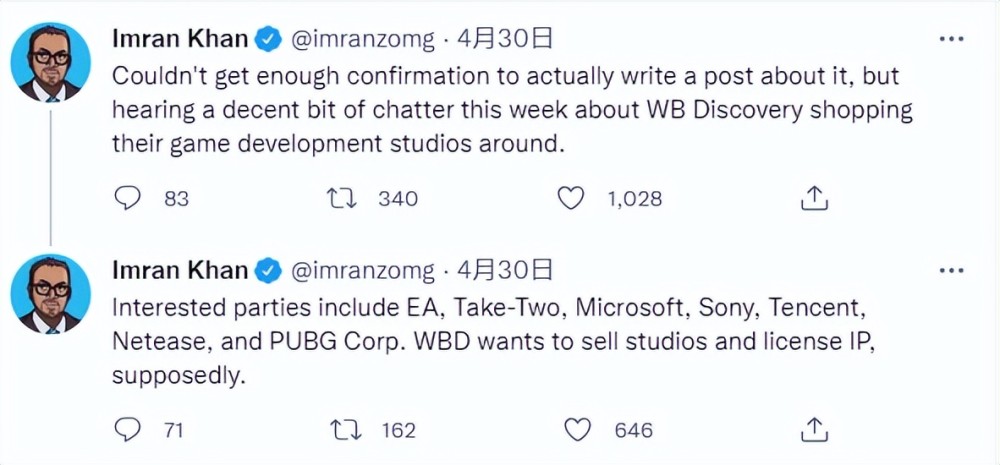 微软、贵格、网易、星号R都有兴趣, 但索尼除外, 索尼现在对华纳工作室有兴趣。