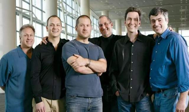 Phil Schiller、Tony Fadell、Jony Ive、Steve Jobs、Scott Fortall和Eddie Cue是iPhone核心成员(从左到右)。苹果提供了图像。