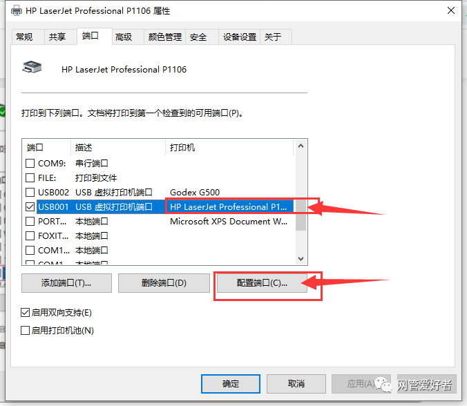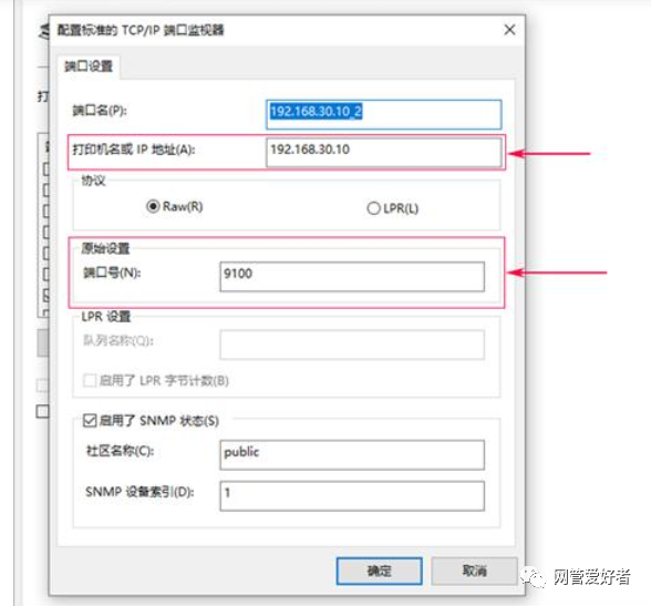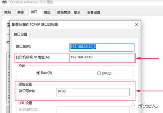 见打印机的 IP 地址和端口号(需要后方地图)。