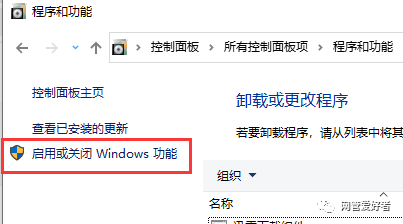 左侧选择“ 启动或关闭窗口功能 ” 。