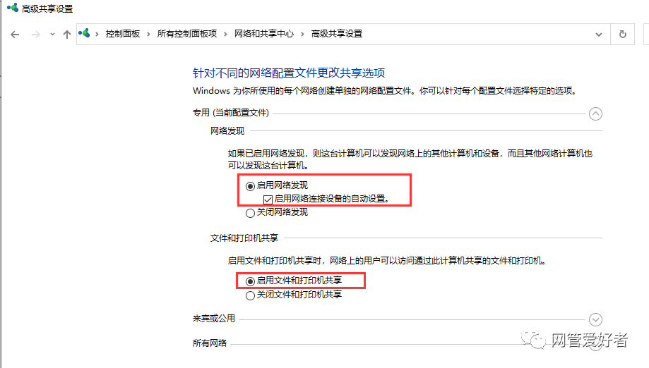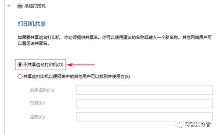 在共享方面,所有信息都必须从公共网络中提供,个人电脑必须共享,以便与打印机连接,并且必须设置打印机。