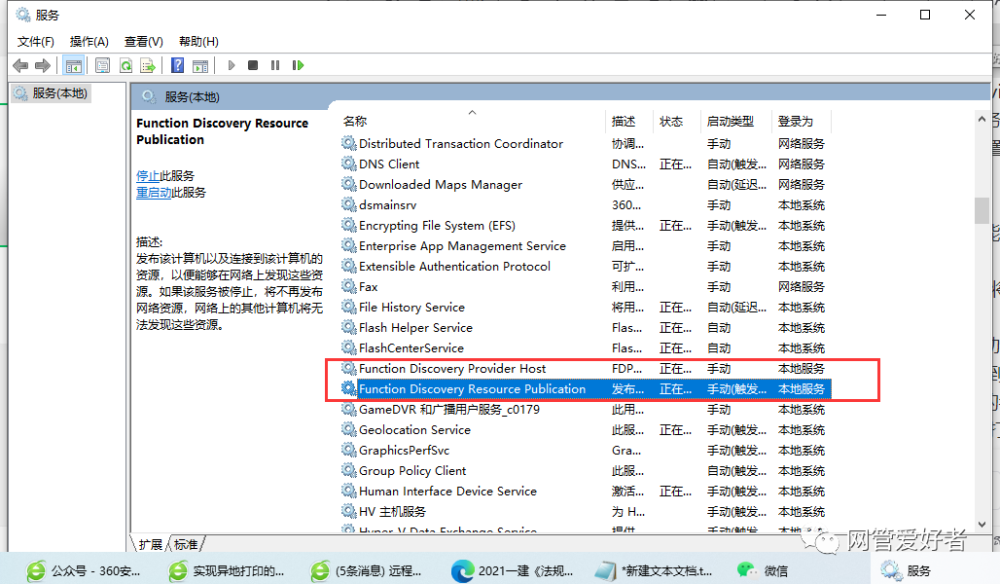 服务窗口中以F开头的两个服务是“行动发现提供者”主机和服务资源建设。对于每一个服务,遵循了下列程序:双击服务,将启动模式更改为自动 。设定服务状态开始,点击确定即可。