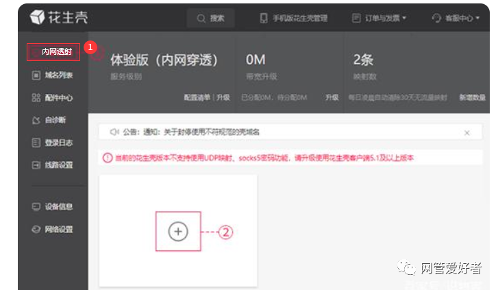 当激活花生箱时,内网穿透块会单击“+”来创建地图。