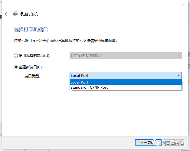 接下来,选择创建一个新端口, 然后选择“ 标准 TCP/IP 端口” 作为端口类型 。