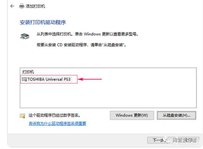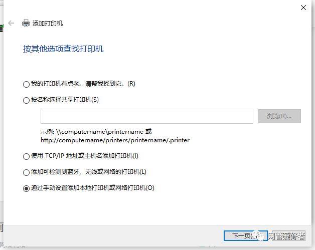 在手动设置中添加本地打印机或网络打印机后, 跳转到下一步 。