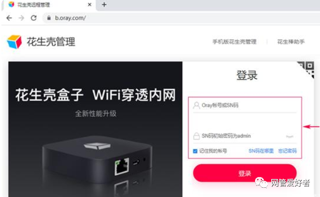 浏览器输入 b. I'm sorry, oray. com 进入后台输入花生罐 SN 代码和默认密码管理器登录;
