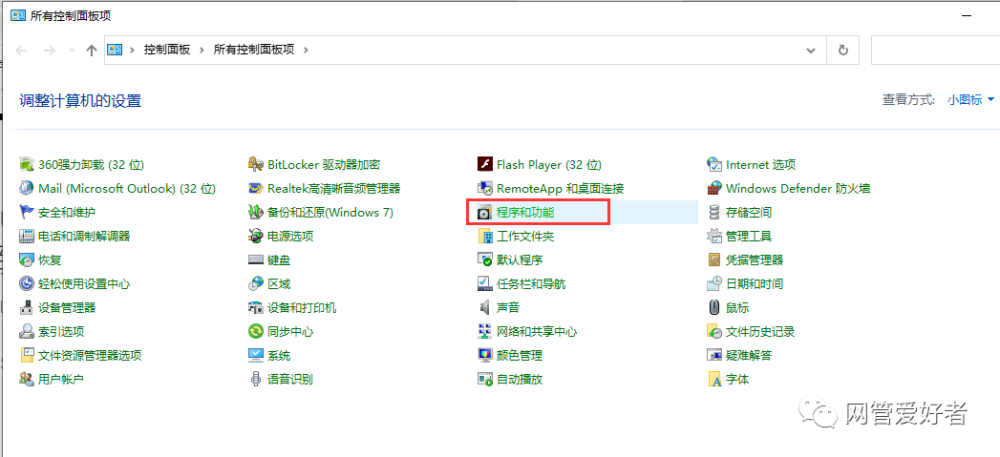 将控件面板打入桌面搜索框,然后单击程序和函数图标,打开控件面板。